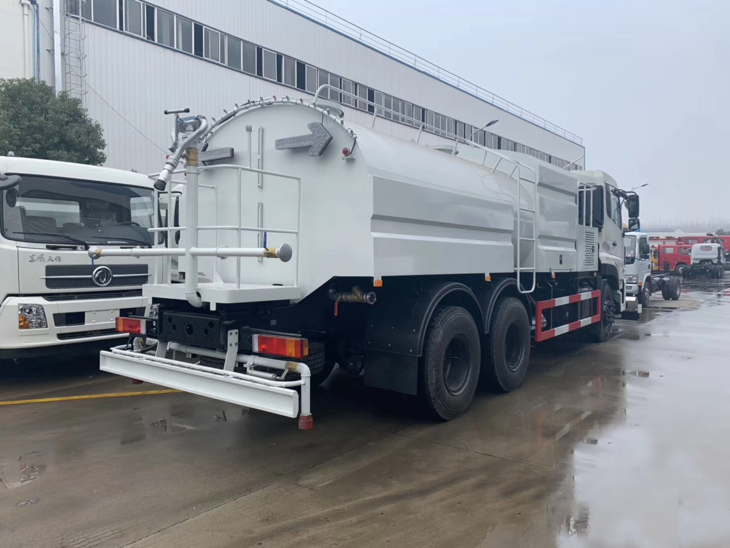 | 其他 | 此車為路面清洗專用車,專用裝置為高壓水泵,噴**.此車前伸為(mm):980.介質(zhì):水,密度:1000千克/立方米.罐體有效容積:12.6立方米, 罐體尺寸(mm): 5080×2350×1550,外形長/軸距/后懸對應(yīng)關(guān)系為(mm):10500/4350+1350/2340,11500/5350+1350/2340,11850/5700+1350/2340,9950/3800+1350/2340. 防護(hù)材料:Q23**碳鋼,連接方式:左右側(cè)面及后下部防護(hù)均采用焊接連接,后下部防護(hù)斷面尺寸(mm):120×50,后下部防護(hù)離地高度(mm):480, ABS生產(chǎn)廠家:東科克諾爾商用車制動系統(tǒng)(十堰)有限公司;型號:3631010-C2000.隨底盤選裝駕駛室. | ||