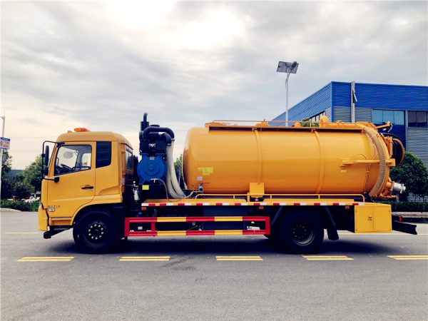 吸污部分:9方污罐,罐體8mmQ235優(yōu)質(zhì)碳鋼,配濰柴375(420)副發(fā)動機(jī)帶淄博SK-30水循環(huán)泵,還可以選配羅茨泵。10米吸污管一根,進(jìn)氣管加過濾網(wǎng),防溢閥加高,后蓋卡扣鎖緊,前視污亮管,后尾部加裝3個力拓牌100mm的球閥吸污口,600mm排污口液壓開啟,罐體帶舉升功能。