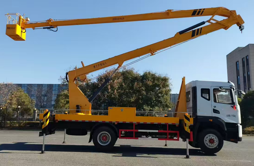 二、上裝配置:整車采用 CAN 總線系統(tǒng),并配備無線遙控器,360°可旋轉作業(yè)平臺 ,H型支腿,橫向跨距更寬,穩(wěn)定性更強。轉臺和吊籃設有啟動和熄火開關,配置應急泵。作業(yè)高度22米。