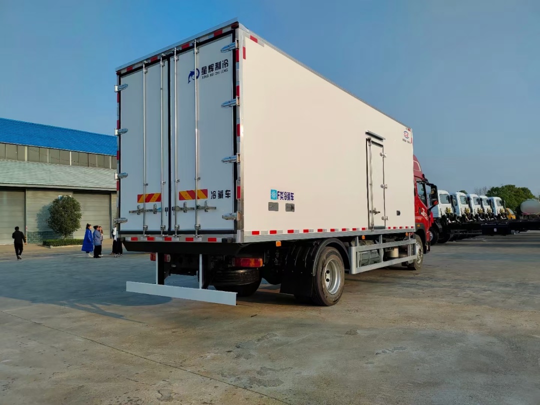 二、廂體配置:采用我公司真空吸附、液壓吸附、斷熱橋技術(shù),大型恒溫?zé)釅?,無(wú)縫合成,一次成型工藝制造而成,保溫性能達(dá)到規(guī)定標(biāo)準(zhǔn)。廂體內(nèi)部尺寸:6750*2440*2500(mm),容積為41立方。廂體內(nèi)外采用新款納米玻璃鋼板(不吸光、隔熱性好、硬度強(qiáng)、抗氧化),中間保溫層為8公分厚保溫板,砸不亂底板,LED照明燈及示寬燈,高密閉性門(mén)板隔溫套件,全密封鎖溫壓條,高韌性不銹鋼鎖件。